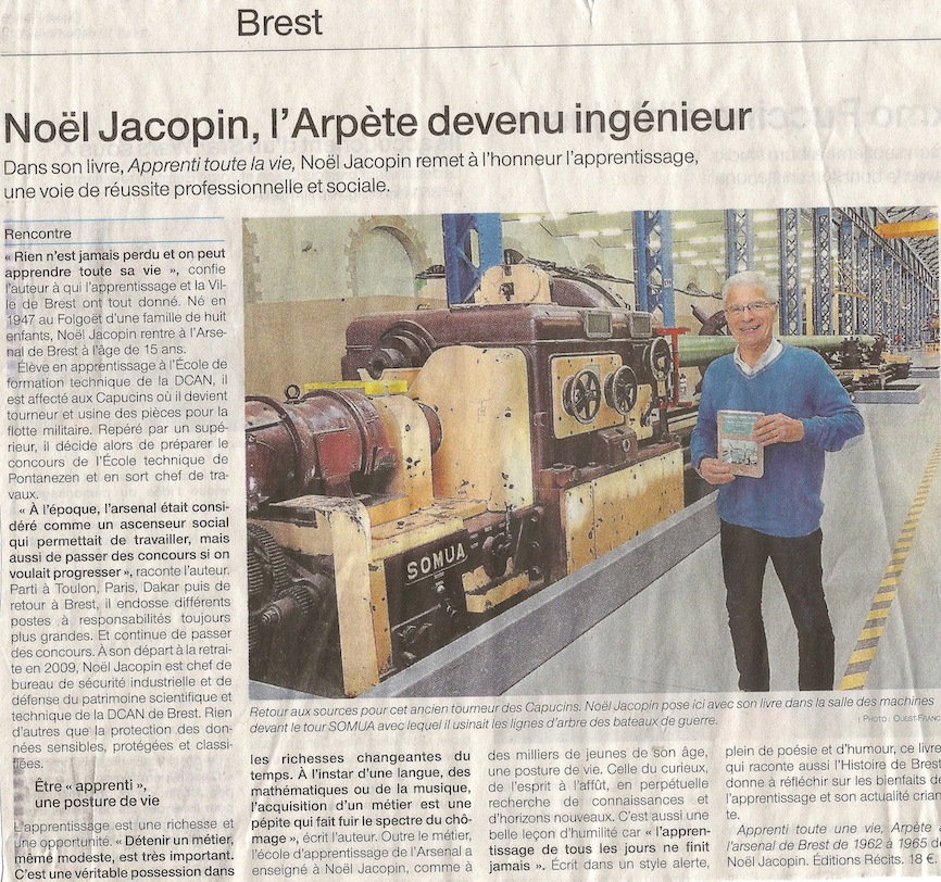 Né en 1947 au Folgoët, Noël Jacopin fait partie de ces milliers de jeunes pour lesquels l’apprentissage a été une voie de réussite professionnelle et sociale.