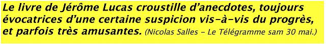 "Fruit d’un travail minutieux de recherches aux archives départementales, agrémenté de témoignages recueillis auprès des personnes ayant le souvenir de ce bouleversement, l’ouvrage témoigne notamment de l’ouverture vers le monde extérieur qu’a permis la fée électricité. Foisonnant d’anecdotes tendres ou cocasses (...) Jérôme Lucas propose un livre sincère et humain..."