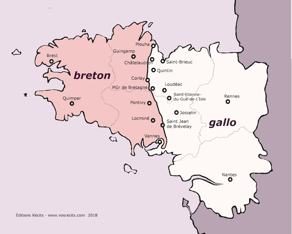 Limite linguistique gallo breton - Carte libre de droit, disponible aux Éditions Récits - contact@vosrecits.com