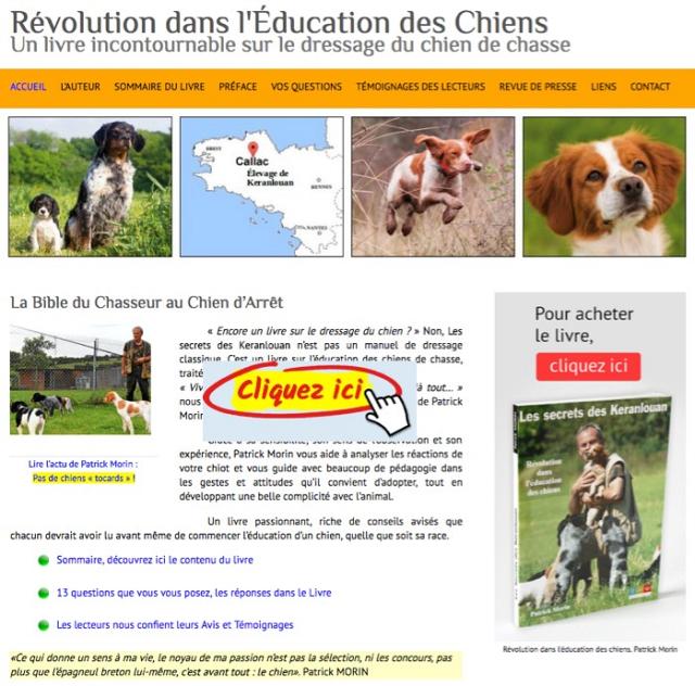 "Les secrets des Keranlouan" de Patrick Morin comporte les mots-clés suivant : Chien d’arrêt, patron, chien rapport, obéissance chien de chasse, quête trop longue, quête trop rapprochée, collier électrique, marche au pied chien, agressivité du chien, peur du coup de fusil, timidité du chien, flair, nez, âge dresser son chien, chiot à la chasse, débourrer... Comment dresser son chien ? Conseils de dressage ?