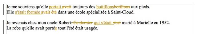 Je mettrai en évidence mes retouches en utilisant une autre couleur de police de caractères. Ce sera vous, l’auteur.e, qui validerez la version corrigée en décidant d’accepter ou de refuser telle ou telle proposition de retouche.